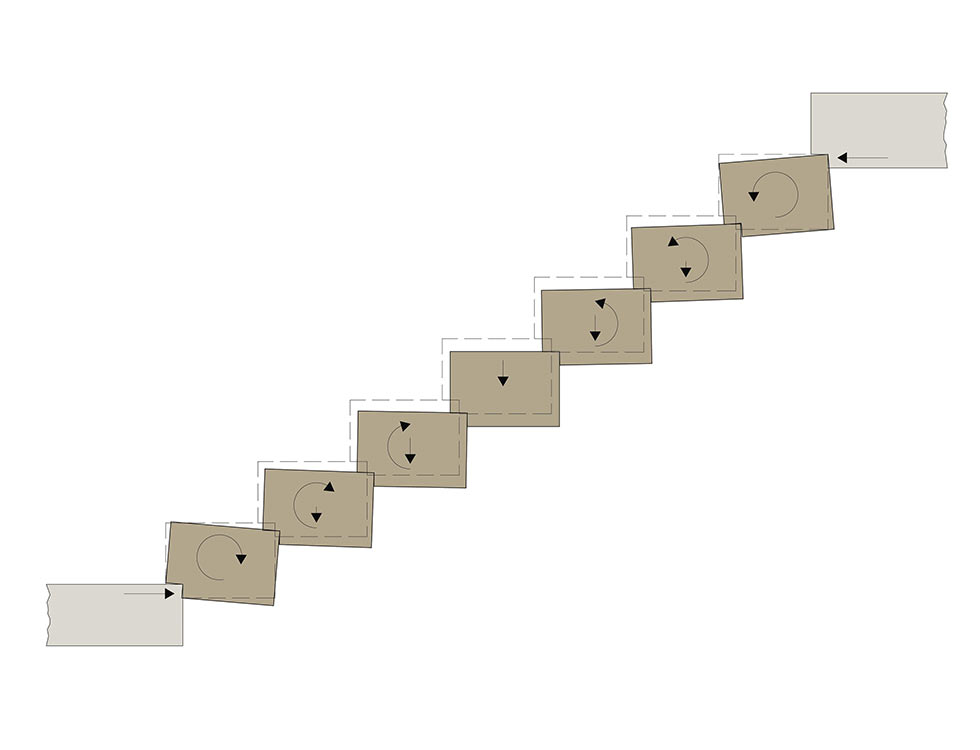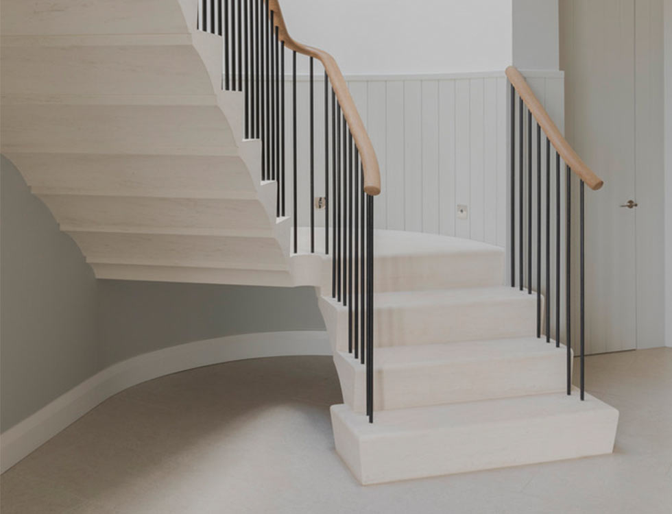 Stone is the perfect material to achieve those aims. It uses the volume of each tread - necessary to form the tread and riser surfaces - to work in torsion to carry the loads to the wall and down the flight.