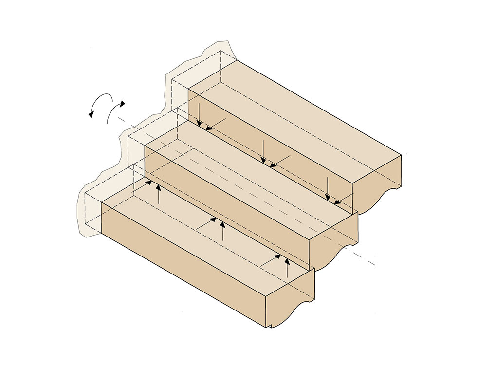Excuse us if we get a bit technical here. The reinforced concrete stair flight had been designed as a one-way spanning, inclined slab supported at the top and bottom on the floors. The treads and risers were mass-concrete, triangular prisms sitting on top of an inclined slab. The 'structure' is the reinforced slab that sits below the treads and risers, which makes no use of the material that is needed to form the treads and risers that we walk up - in fact the added material just adds more weight to the staircase. We thought to ourselves, ‘what if the material for the treads and risers could be incorporated as part of the structure?’ This approach would allow us to thin down the slab or ‘waist’ of the flight, leading to both a more elegant staircase design and less material being used.