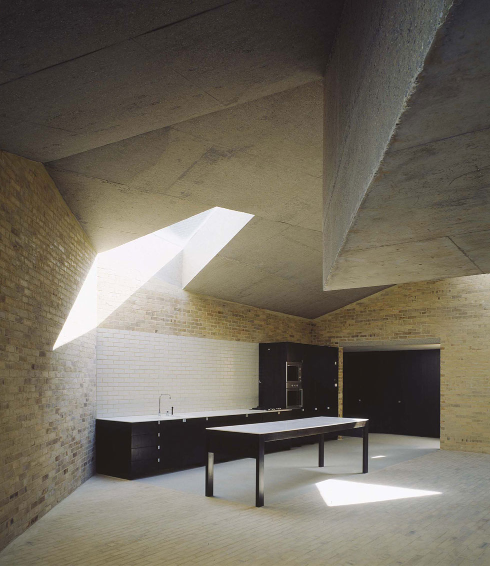 A new house on a very challenging site in West London. The existing house was demolished and a new two-storey house built in its place. Exposed articulated concrete soffits have been used to create a dramatic roof, incorporating complicated geometry and a variety of finishes throughout.