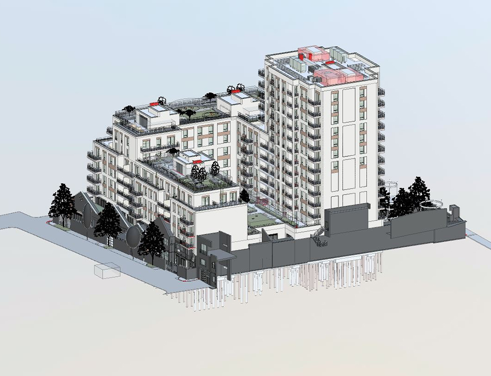 Our Glengall Road project is a mixed-use scheme on the site of a former light industrial complex, southeast of Elephant and Castle tube station. The scheme involved the demolition of a series of existing warehouse units on the tight site, followed by the construction of a mixed-use building providing approximately 170 residential units. The four interlinked blocks vary in height from six to 14 storeys, with two floors of commercial space at street level. All five of the blocks are constructed as reinforced concrete frames, with flat slabs and blade columns.