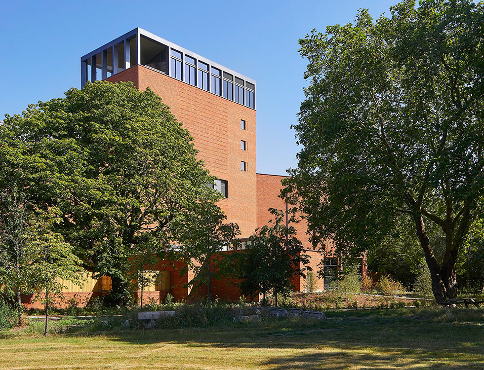 The enormous loads of the archive shelving - equivalent to a swimming pool on every floor level - combined with the extremely stringent deflection requirements for the racking, posed a significant challenge. The resulting reinforced concrete structure is exposed throughout the building as a feature of the architectural design, but also to assist the regulation of temperature and humidity in the archive spaces. All rainwater from the building is directed into the new pond which functions as a SuDs attenuation tank with its level varying with the seasons.