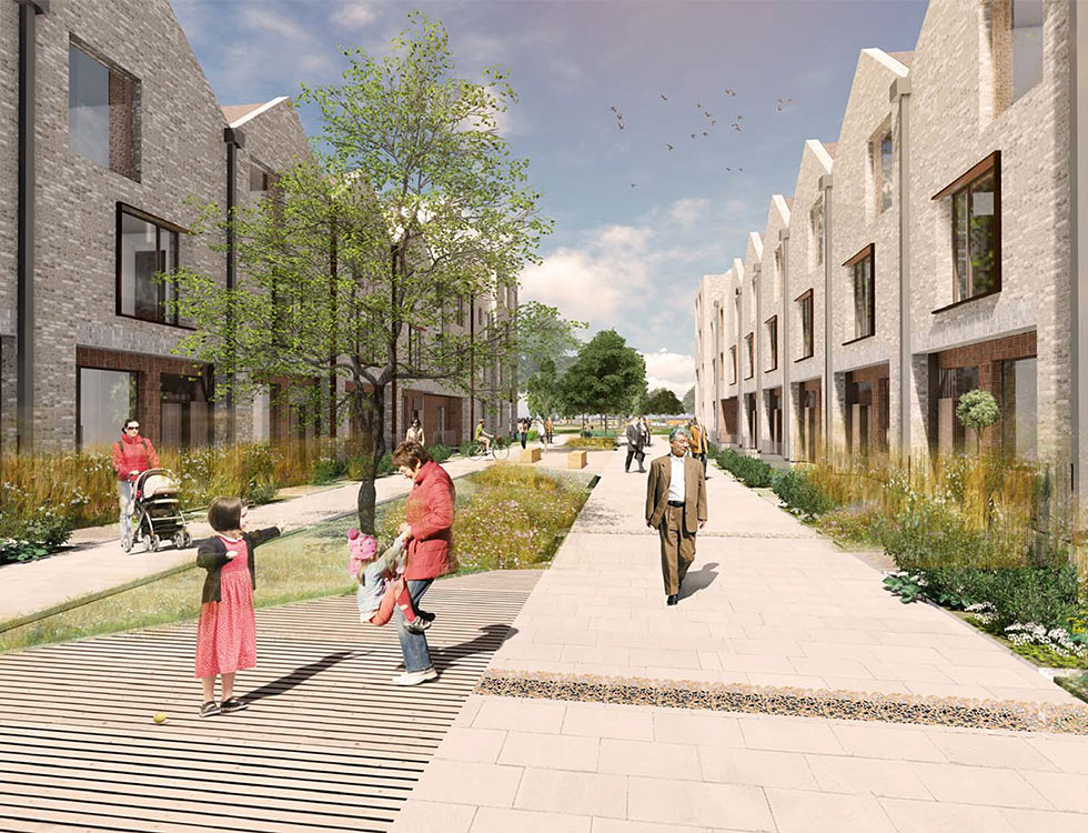 Our work included a detailed Flood Risk Assessment (FRA) and Sustainable Drainage System (SuDS) design for the 30ha site. Existing flood modelling has shown extensive overland flows entering the site from off-site. To protect the development from possible flood risk, the new park area has been designed as a temporary detention area for flood waters during storm flood events. This has been agreed with the Environment Agency and Lead Local Flood Authority (LLFA) as part of early discussions and negotiations.